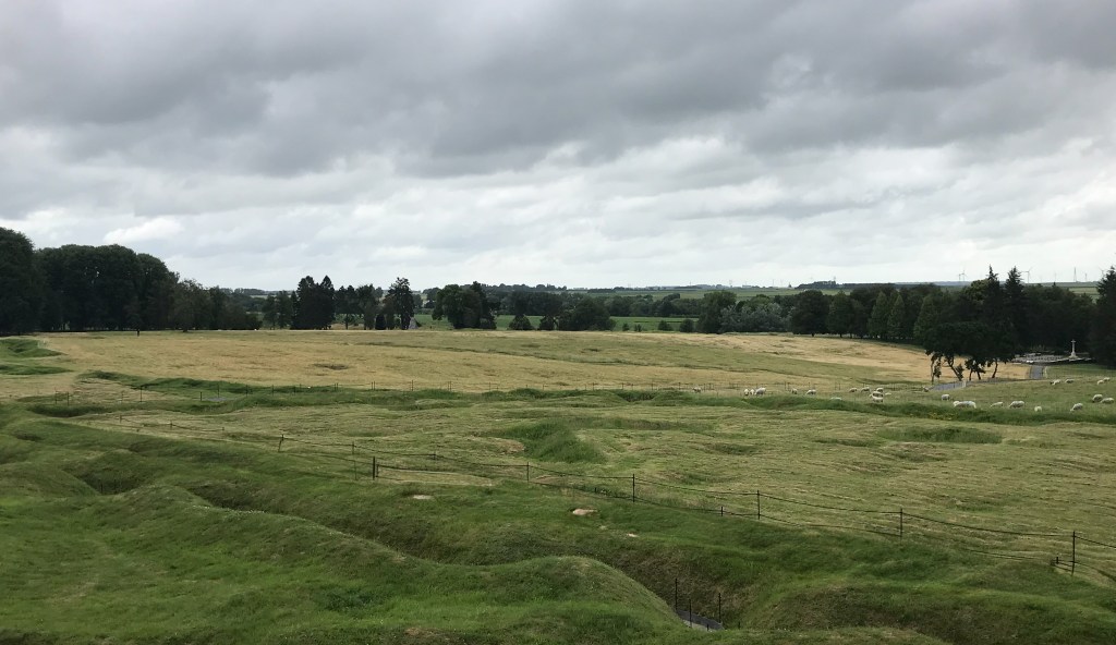 It’s what strikes you as you drive down the Albert-Baupaume Road; bright yellow fields of mustard sweep across the horizon in great arcs that drop off in to valleys, abruptly changing colour as they blend seamlessly with the opposite incline. But looking at the rolling hills of the Somme one can imagine the labour in having to charge across these fields in the heat of the summer, straining up and down the slopes, achievements measured in yards.