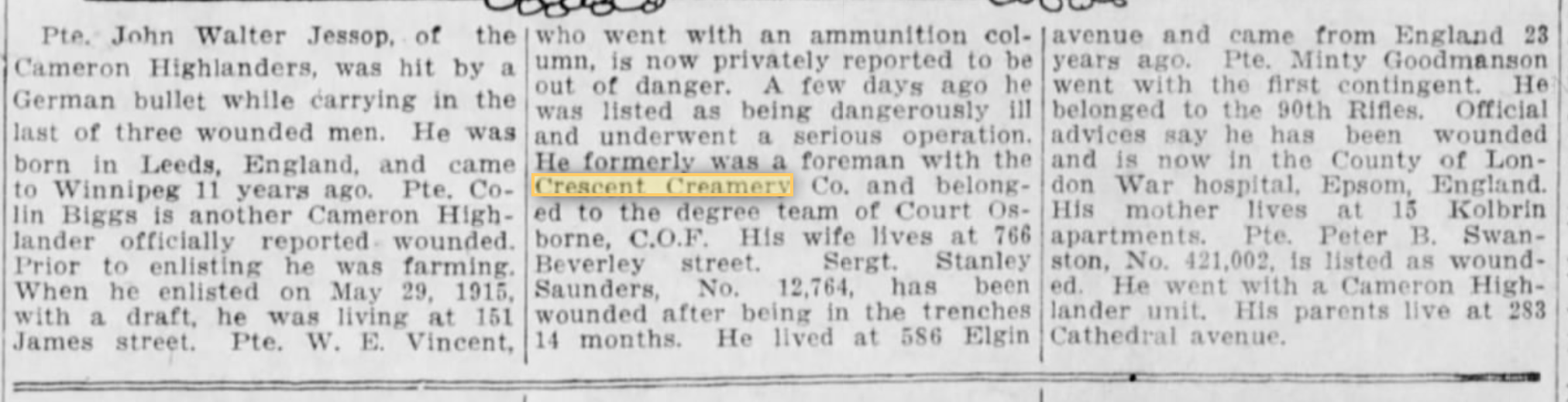 Researching the story, however, was equally interesting and an important learning process. It was the first time that I used City Directories in uncovering a life. These revealed Way’s employment with the Crescent Creamery Company, as well as detail on where he lived and with whom.