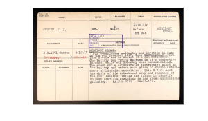 My initial steps were to look at his Attestation record from the Canadian Archives, as well as the battalion diaries from the day he was killed, the battalion reports from the battles leading up to that day, and also the Record of Citation for the medal he was awarded; his headstone showed that he had been awarded the Military Medal (posthumously). At the time of first writing, Library and Archives Canada (LAC) had not finished digitizing service records so I was missing an important part of any soldier’s story. I also came across some letters that Hike Currin had written to two lady-friends from Denison University (Edith Philbrook, Class of 1912; and Lilly Sefton, Class of 1911) that were being used in teaching a history course. At some point in the journey I also communicated with an archivist in Denison, Ohio where Currin went to university. It was the letters, however, that truly inspired me – they allowed me to absorb the persona of William “Hike” Currin and to write from a very personal perspective.